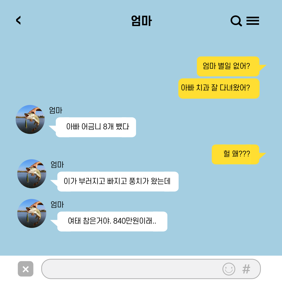 그런 이빨로 어떻게 여태까지 밥을 먹은 건지 모르겠다고 엄마가 너무 안쓰럽다고 하시더라구요