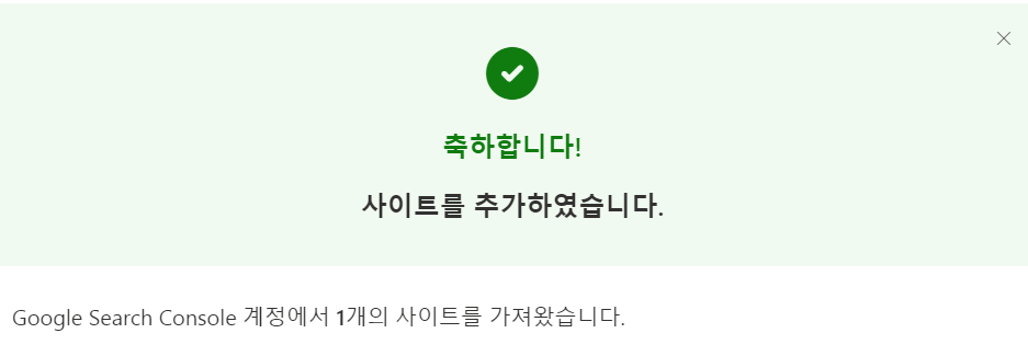 제대로 진행이 되셨다면 아래의 그림과 같은 메시지를 보실 수 있습니다. 구글 서치 콘솔을 통해 등록하면 정말 3분 안에도 쉽게 등록할 수 있는데요. 빙이라는 사이트가 생소해서 검색하지 않으셨던 분들이 있다면, 빨리 등록하시기를 추천드립니다. 현재 챗GPT와 open AI 열풍으로 빙 검색이 새롭게 등장하고 있습니다.